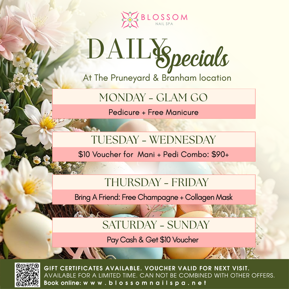 Blossom Nail Spa is one of the best nail salons in the Bay Area, trusted by thousands of clients for our exceptional cleanliness, consistent quality, and luxury nail services. With convenient locations in San Jose and Campbell, we are known for delivering beautiful results in a calm, modern, and hygienic environment.