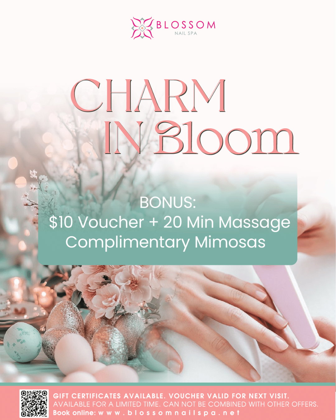 Charm in Bloom: Complimentary Mimosas - 20 Minute Massage