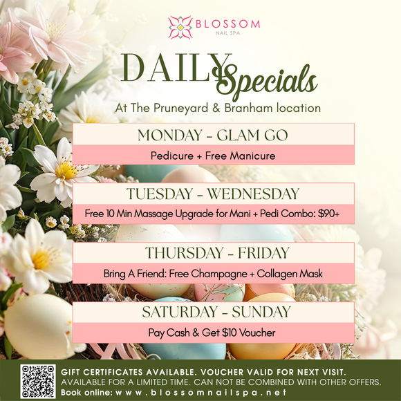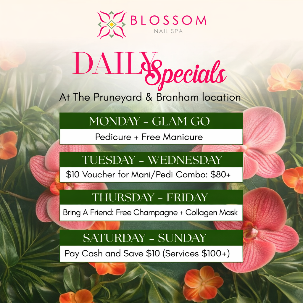 Blossom Nail Spa is one of the best nail salons in the Bay Area, trusted by thousands of clients for our exceptional cleanliness, consistent quality, and luxury nail services. With convenient locations in San Jose and Campbell, we are known for delivering beautiful results in a calm, modern, and hygienic environment.