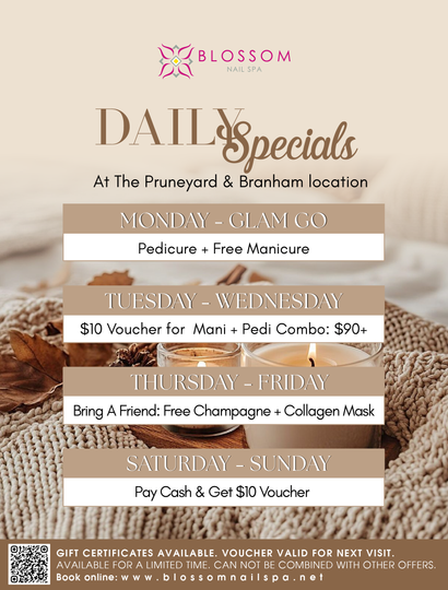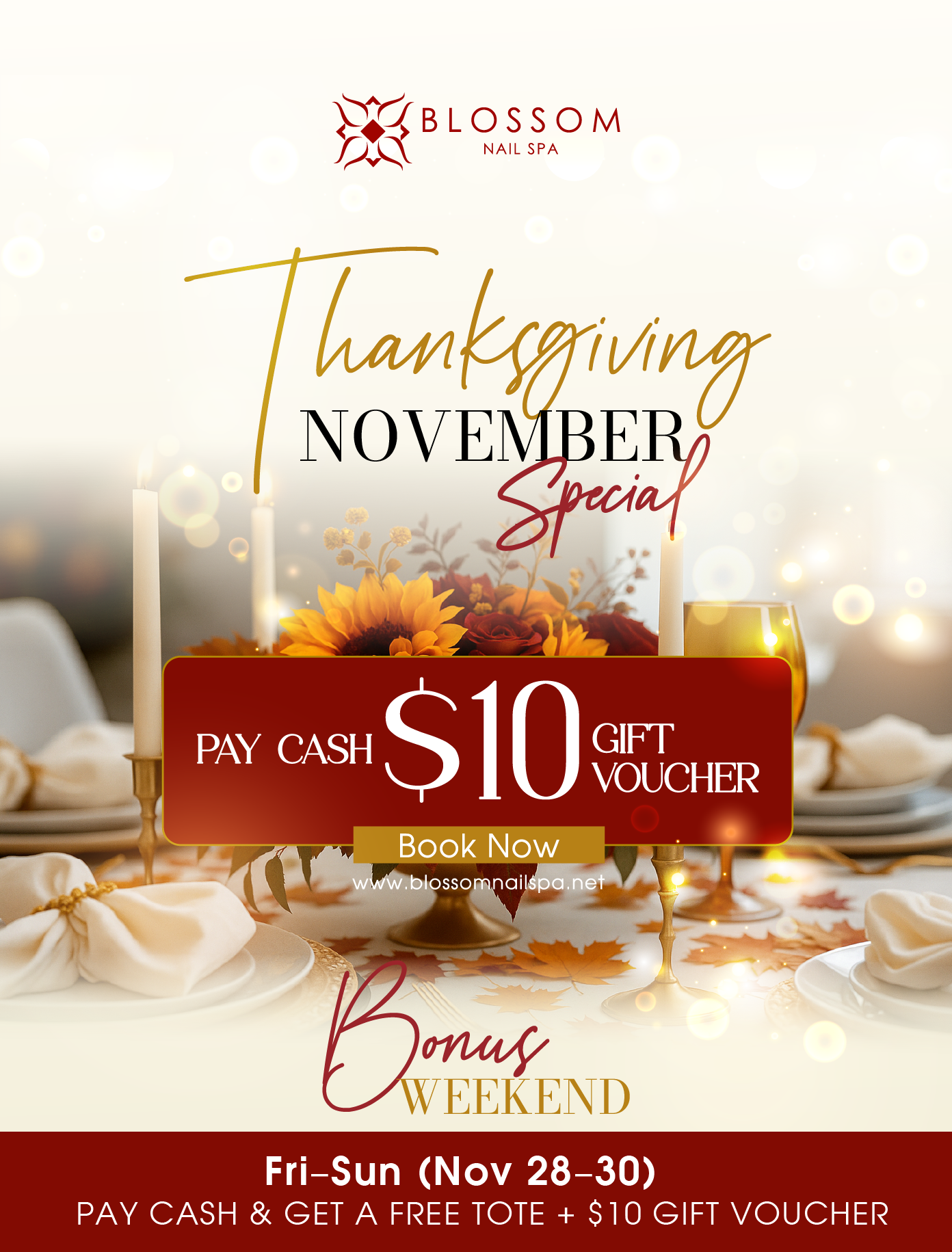 Open on Friday (11/28) & Pay Cash Get A Free Tote Bag + $10 Voucher Cozy Glow Package: Soothing 10 minute Massage - Bonus: Includes No-Polish Manicure