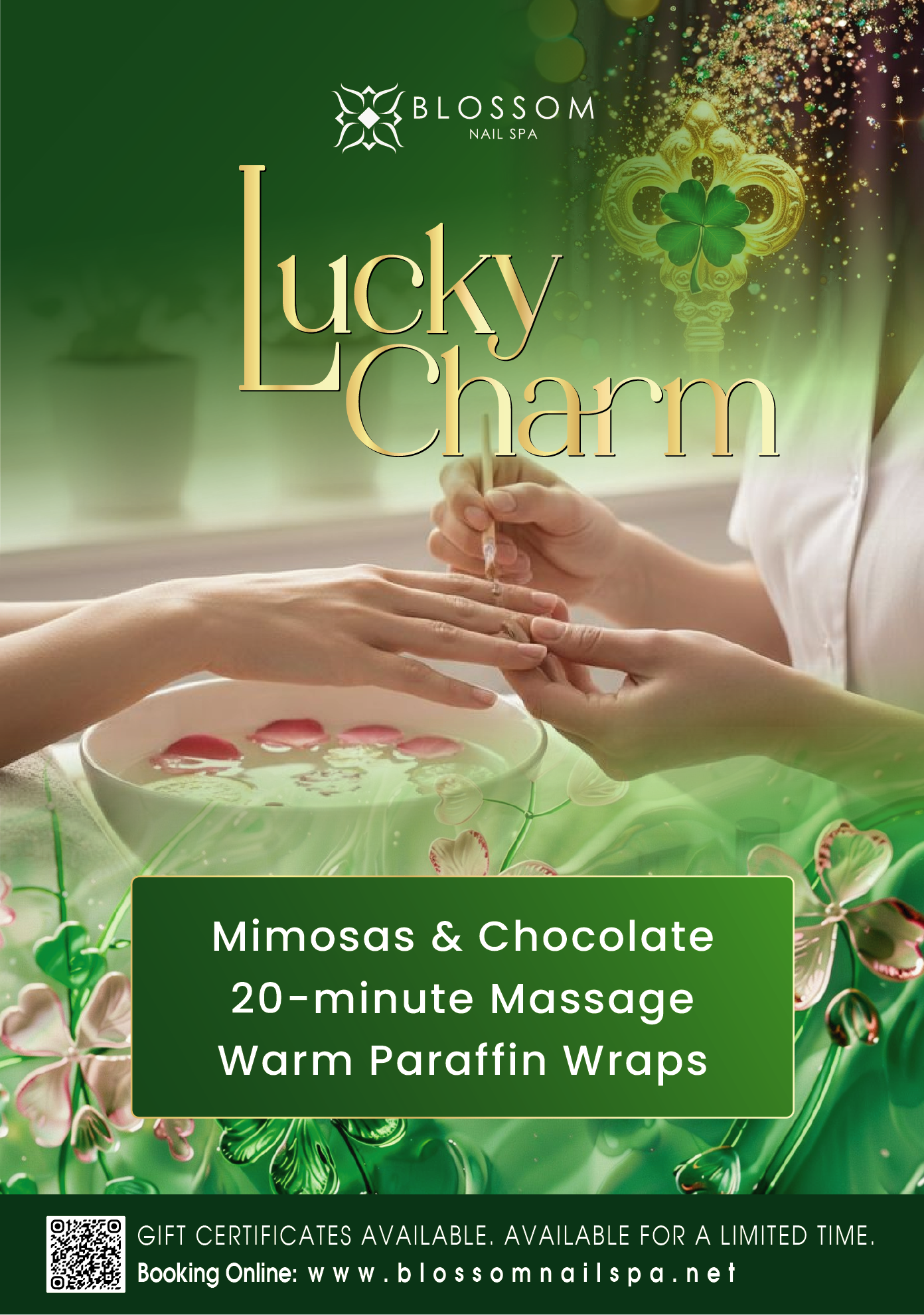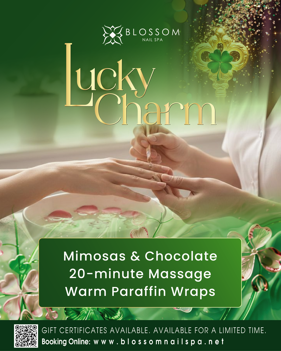 Lucky Charm: Mimosas & Chocholate - Warm Paraffin Wraps - 20 Minutes Massage