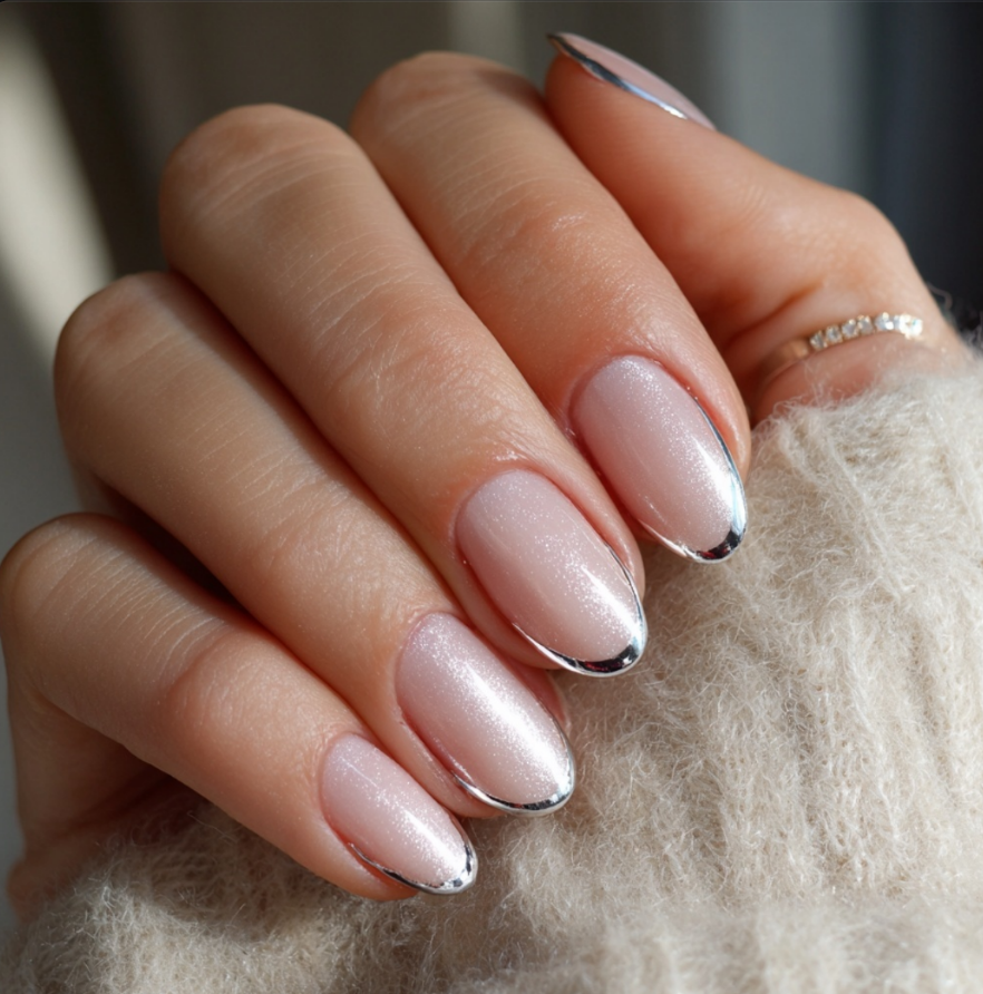 Chrome nails are dominating winter nail trends, and this icy version captures the essence of frost and snow. The metallic silver tips add edge to the classic French manicure, making it ideal for anyone wanting a contemporary twist on a timeless look. This design works beautifully for winter weddings, holiday parties, or everyday elegance.
