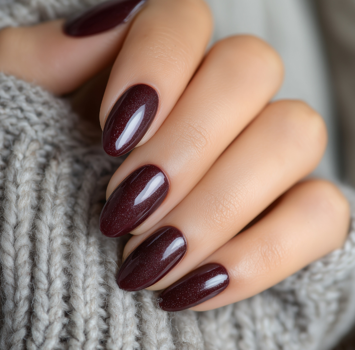 Pair this nail shade with chunky cream knits, wool coats, and gold or pearl accessories for a modern winter aesthetic. The almond shape adds a touch of femininity, while the glossy finish keeps things fresh and polished. Whether you're heading to a coffee date or a holiday brunch, these nails whisper cozy elegance, not scream it.