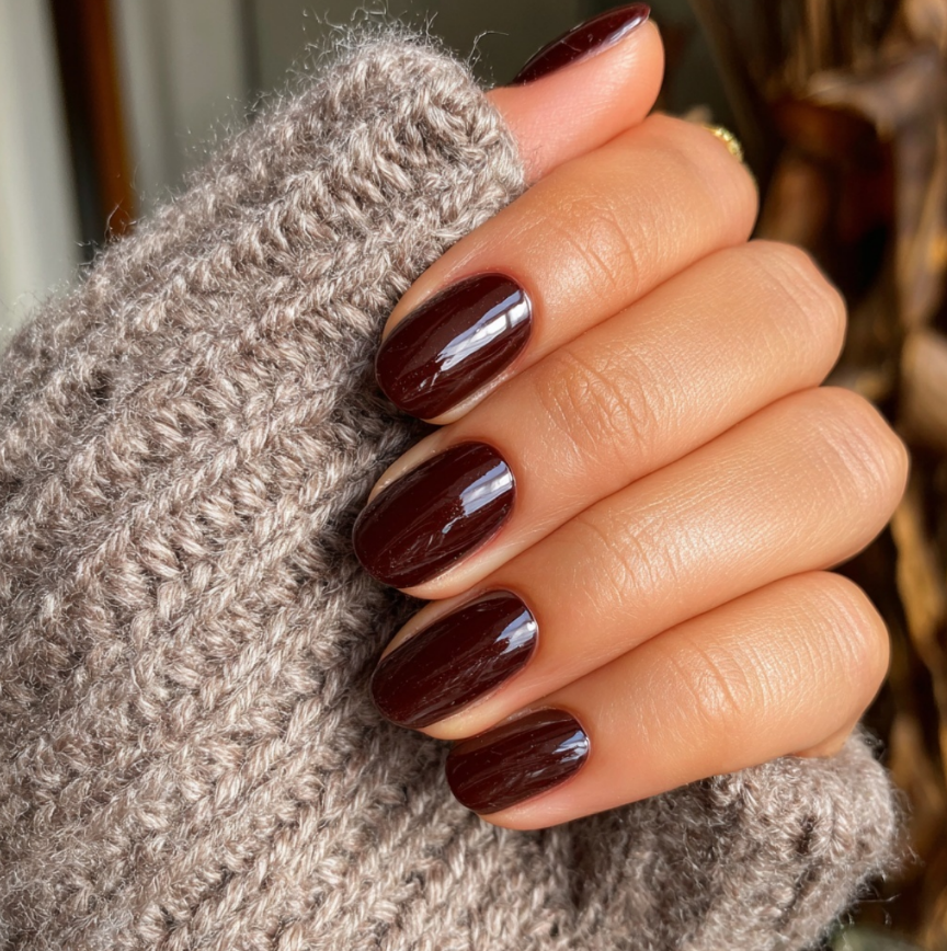 Brown nails are having a major moment, and this espresso shade is ideal for winter. The warm, earthy tone complements the season's cozy aesthetic while feeling modern and chic. Unlike darker shades, brown nails are surprisingly versatile and pair effortlessly with any winter wardrobe. The high-gloss finish adds polish and makes the color appear even richer.